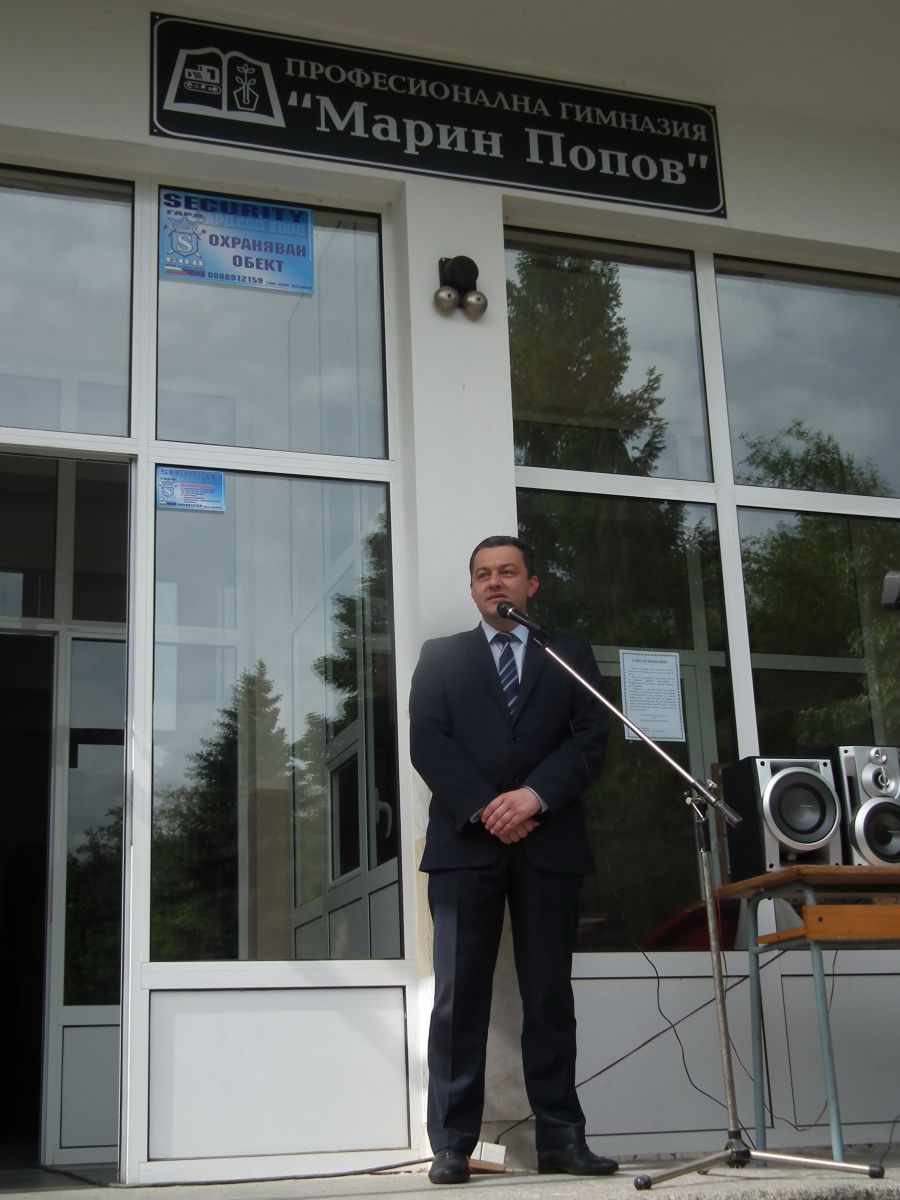 Своите поздравления към зрелостниците на ПГ „Марин Попов" отправи кметът д-р Иван Иванов. „Никога не забравяйте преподавателите си, защото те са изживели всеки един ден с вас. Моят приятелски съвет към вас е да бъдете себе си и да направите най-добрия избор в това, което ще изберете да учите.“