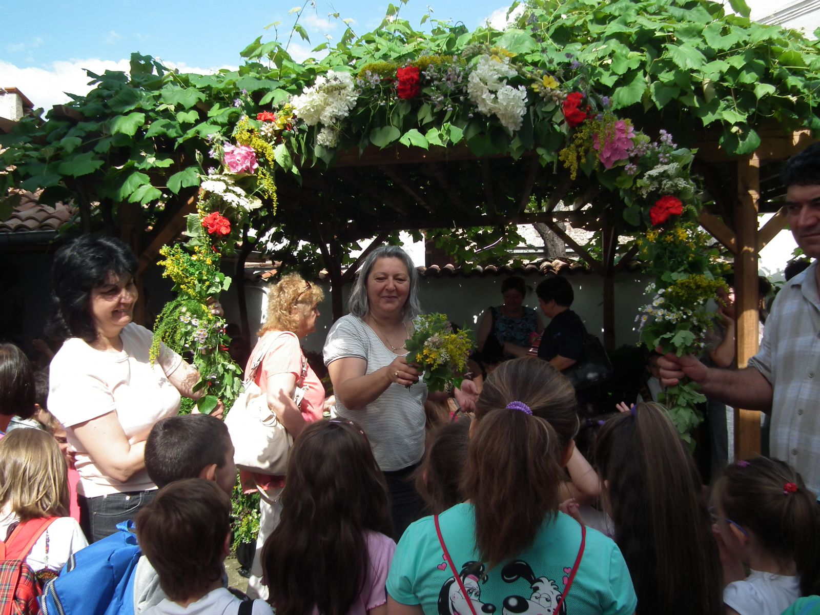 Както традицията повелява, всички деца и гости минаха под Еньовския венец и бяха поръсени с мълчана вода. Присъстващите получиха китка от набрани преди зазоряване билки и здравец.