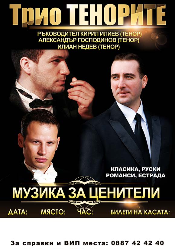 Tова са Те! Трио  „ТЕНОРИТЕ“,  в чиито гласове се заслушват и звездите …Чуйте ги и Вие, само на 28 октомври в ДК „Мара Белчева“, от 19.00 часа. Определят ги като момчетата с вълшебни гласове. Носители на много награди от певчески конкурси.