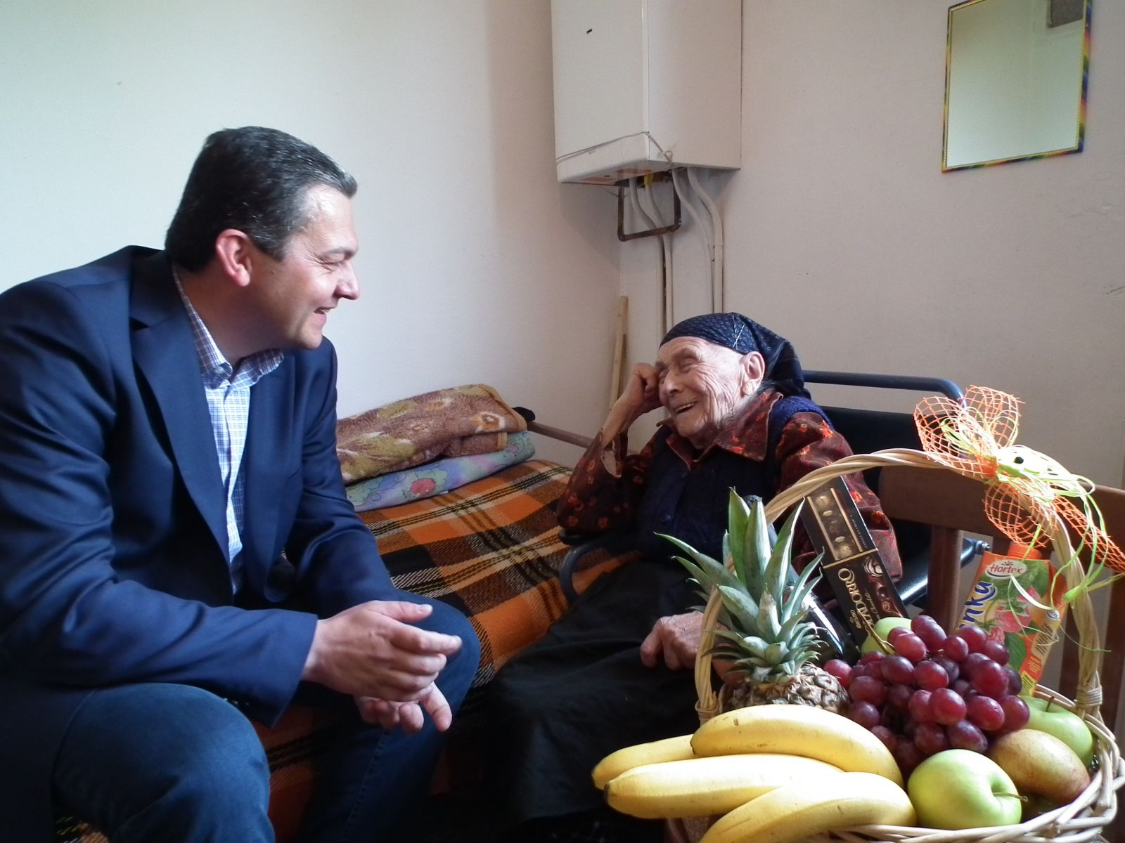 Здраве, силен дух и много радостни мигове с близките хора пожела кметът на Севлиево д-р Иван Иванов на баба Стана, която днес навършва юбилейните 100 години. „Щастлив съм, че мога да хвана ръката на столетница“, каза кметът, като не скри радостта си пред нея. „Малко са хората, които достигат тази преклонна възраст и за това искам лично да те поздравя“, допълни д-р Иванов, като нарече догодина пак да го посрещне с усмивка на лицето.