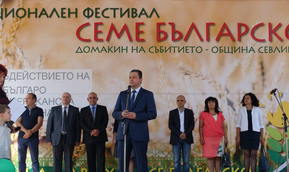 Организаторът на Националния фестивал „Семе българско“ Ивелина Елмазова, също поздрави присъстващите, като не пропусна на изкаже голямата си благодарност към кмета на община Севлиево д-р Иванов и към екипа на Общината, които “със своята отзивчивост и доверие са направили така, че нещата да се случат и то - по един прекрасен начин, за да се превърне този фестивал в традиция и необходимост”. В рамките на втория национален фестивал „Семе българско“, близо 100 изложители на родни продукти показаха съхраненото на територията на България (български семена, вина, мляко и млечни продукти, мед и пчелни продукти, керамични и дървени изделия, български породи животни, градинска техника). Фестивалът се провежда два дни – 23 и 24 май, като и тази година акцент е семето, което е носител на идентичност, нов живот, традиции и продължение на живота. На празника присъстваха Десислава Танева – Министър на земеделието и храните, д-р Иван Иванов – кмет на Община Севлиево, Драгомир Проданов – народен представител от ПП ГЕРБ, Николай Сираков – областен управител на Област Габрово, Д-р Явор Памукчиев – председател на Общински съвет Севлиево, Ивелина Елмазова – организатор на Национален фестивал „Семе българско“, Калин Цветков – регионален мениджър на Българо-американска кредитна банка, основен партньор на фестивала и много други.