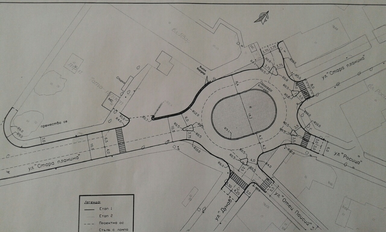 - Затваря се напълно движението през кръстовището – подходите от улици „Стоян Бъчваров“, „Дунав“, „Отец Паисий“ и „Росица“;