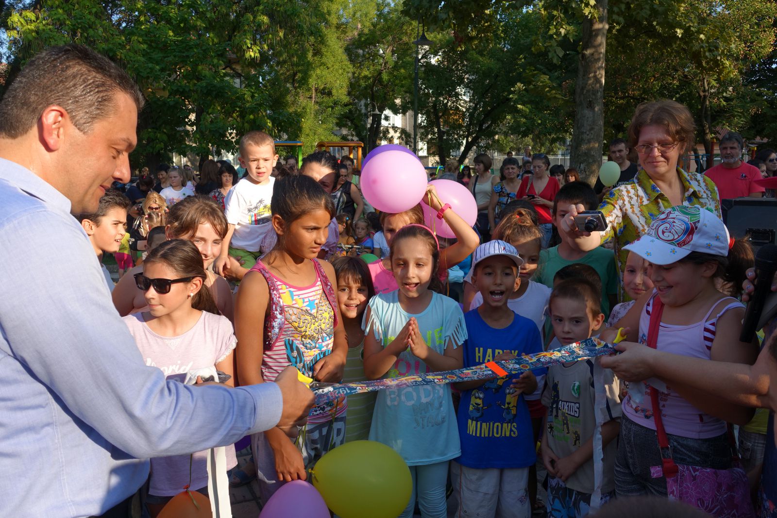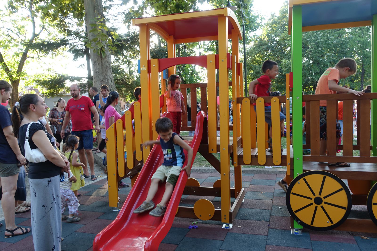 Приключването на проектите за ремонт на детската площадка в градинката до Автогарата, обособяването на детски кът в парка на село Сенник и изграждането на детски фитнес в парк „Черничките“ беше отбелязано с весел детски празник вчера, в градинката до Автогарата. Символично пъстрата лентата с анимационния герой Мики Маус преряза кметът на града д-р Иван Иванов заедно с десетгодишната Борислава. Всички присъстващи бяха посрещнати с балони и бонбони, а аниматорите на празника забавляваха децата с разнообразни игри, песни и танци.