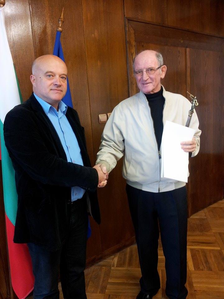 Досьо Досев с почетна статуетка от Община Севлиево за 70-годишния си юбилей