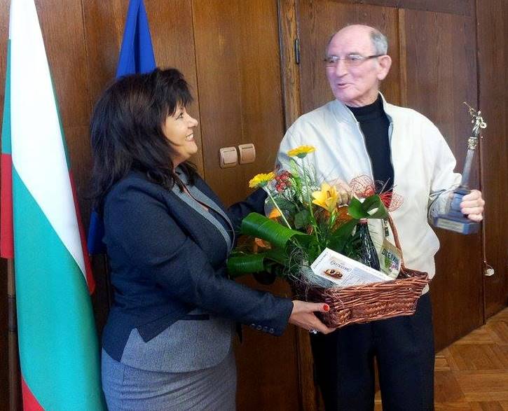 Временно изпълняващ длъжността Кмет на Община Севлиево Калина Георгиева награди дългогодишния треньор по самбо и джудо Досьо Досев за принос в развитието на спорта.