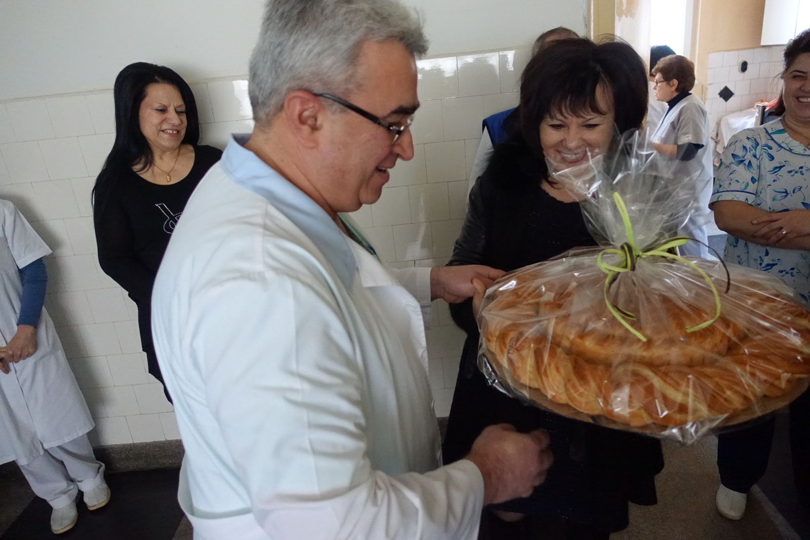 „Община Севлиево ще направи основен ремонт на манипулационната зала в отделението“, каза зам.-кметът Калина Георгиева, която подари на персонала огромна пита за празника.
