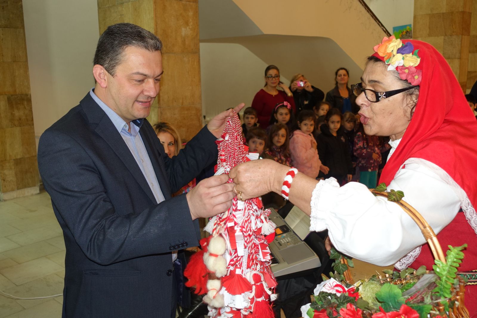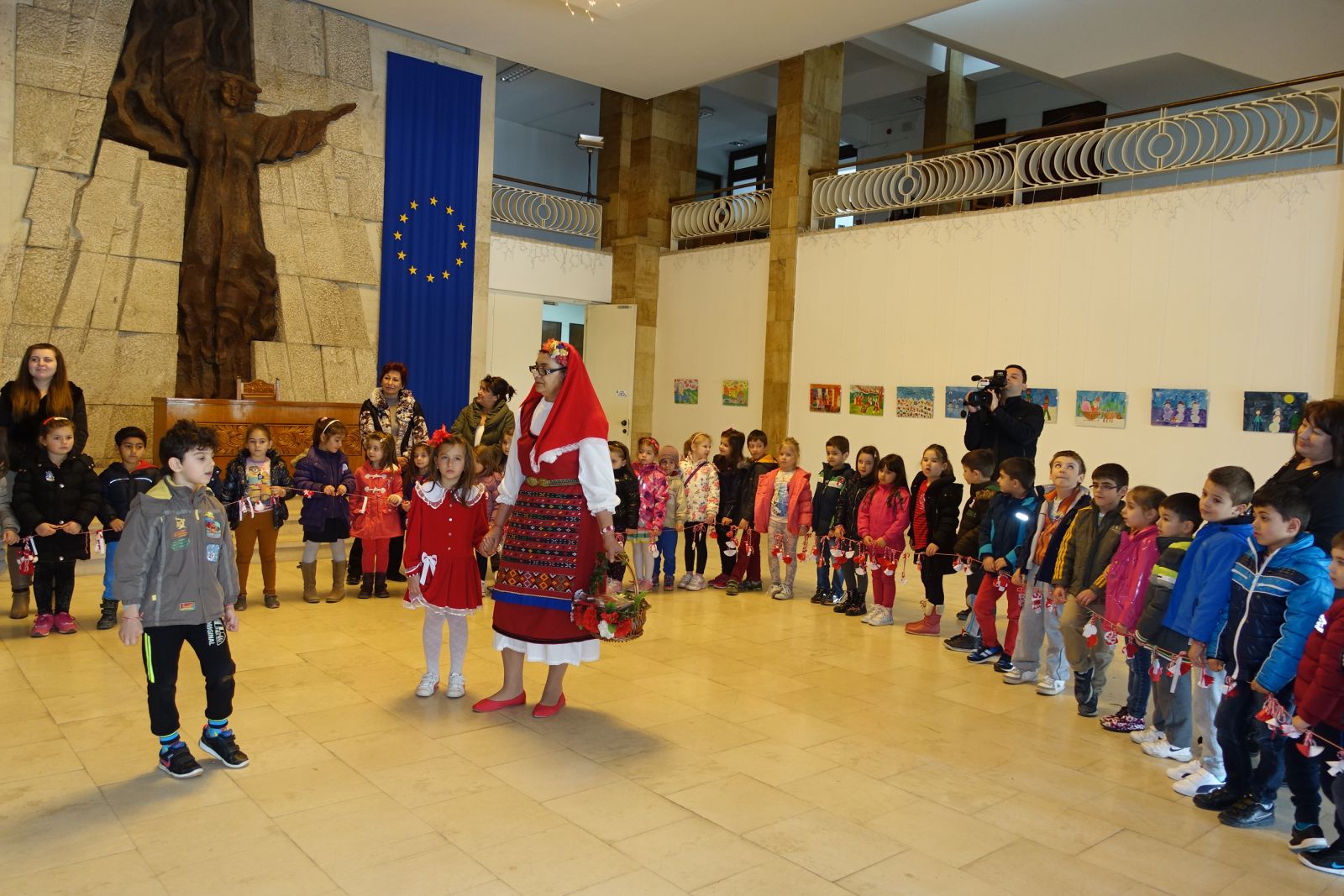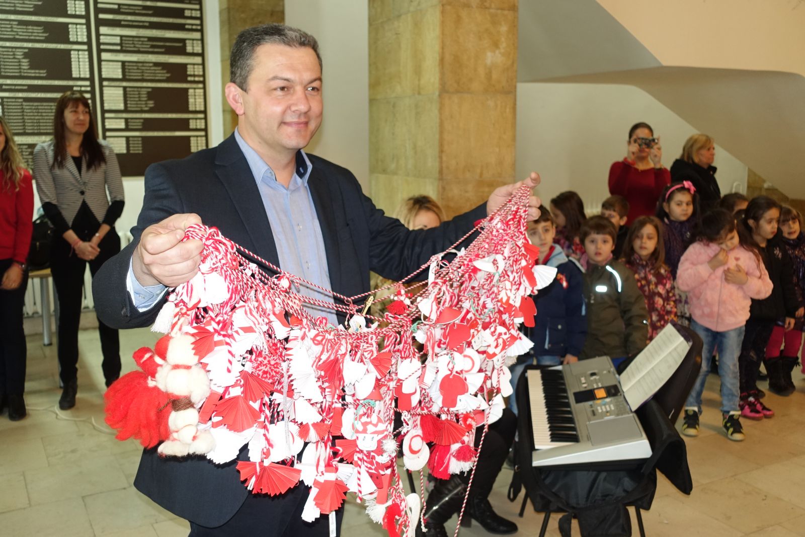 Деца от ОДЗ „Радост“ закичиха кмета Иванов с мартеници