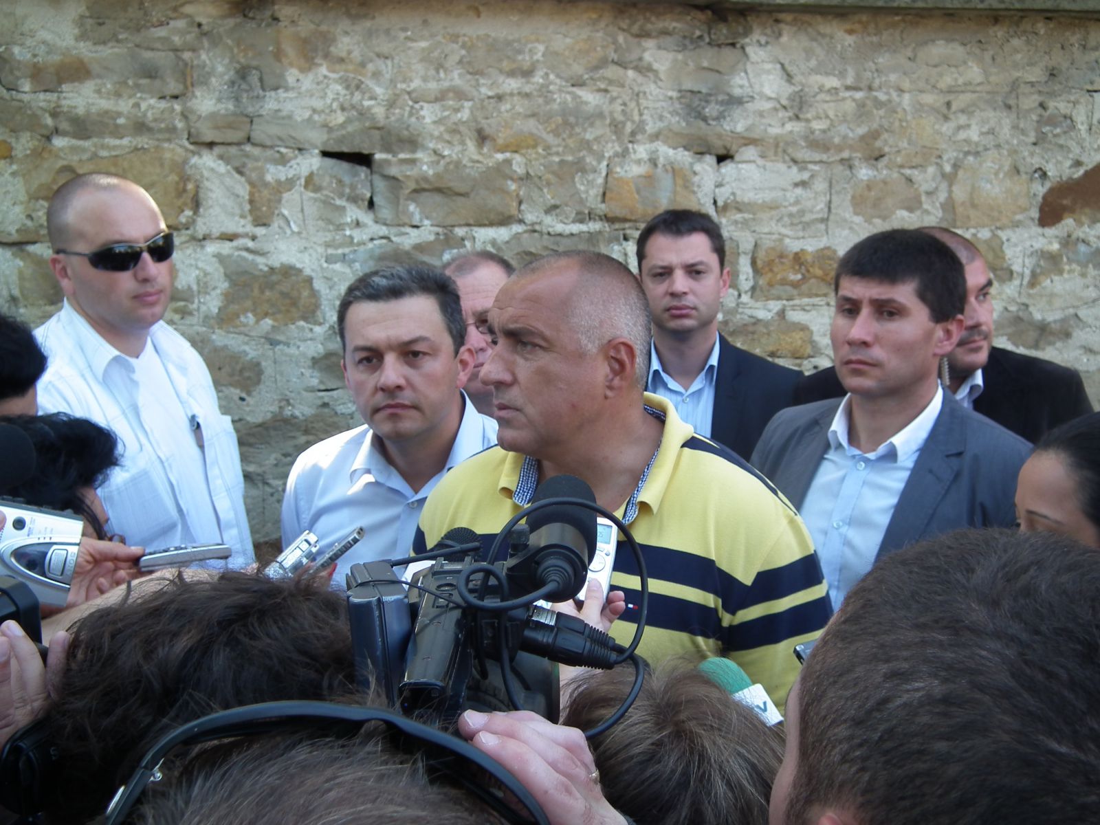 Премиерът, заедно с министрите и кмета на Севлиево пред медиите.