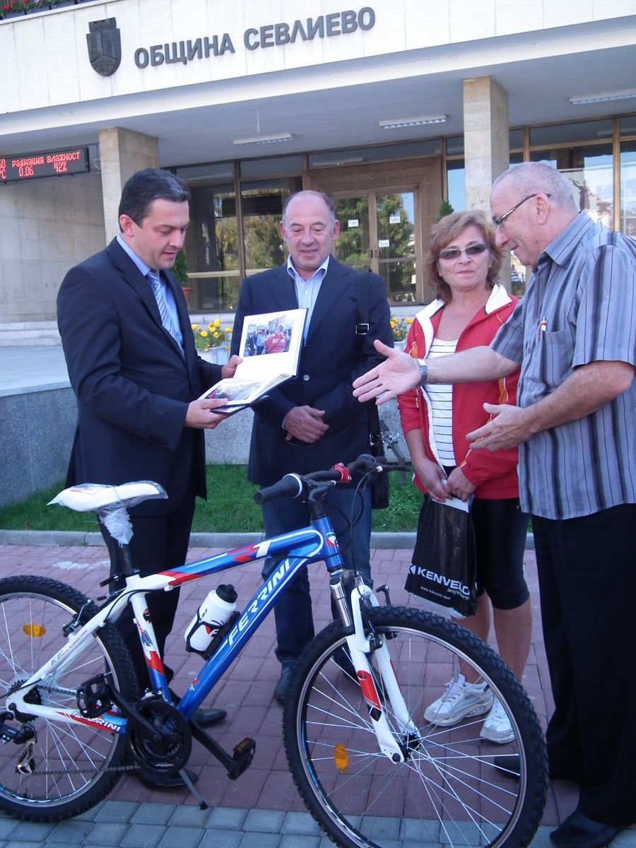 Чисто нов велосипед получи днес кметът на Севлиево д-р Иван Иванов. Двуколесното возило му бе дарено от директора на Българския колоездачен съюз, в знак на благодарност за участието на Севлиево в 62-та международна колоездачна обиколка на България. Г-н Михайлов отправи поздравления към градоначалника като заяви, че в негово лице Българският колоездачен съюз вижда верен съмишленик за подобряване на спортната култура и за повишаване на интереса към колоезденето. От своя страна кметът побърза да зарадва членовете на велоклуб „Ластовица-1905“, като им връчи новия велосипед, заедно със светлоотразителни жилетки на кампанията „Пази велосипедиста!“.