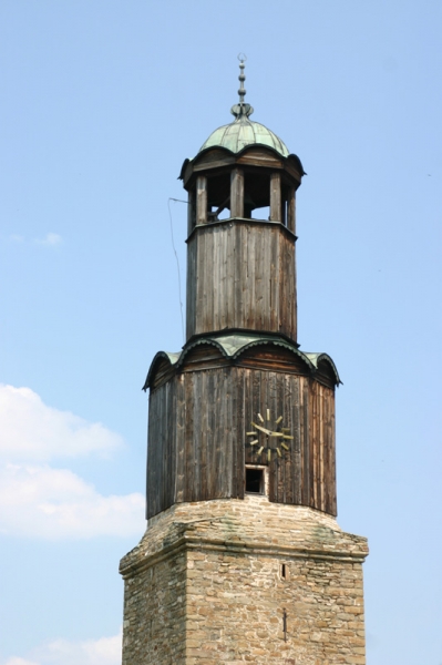 Във външния вид на камбанарията се различават три основни части. Във вътрешността на каменната основа се движат въжетата с тежестите на часовниковия механизъм, който се намира в средната, осмоъгълна част. Дървената конструкция най-горе завършва с купол, обшит с медни листи. Във вътрешността й се намира камбаната, а през отворите по стените свободно излита звънът. Интересни са каменните релефи, които изобразяват строителни инструменти, военни предмети, различни розети.