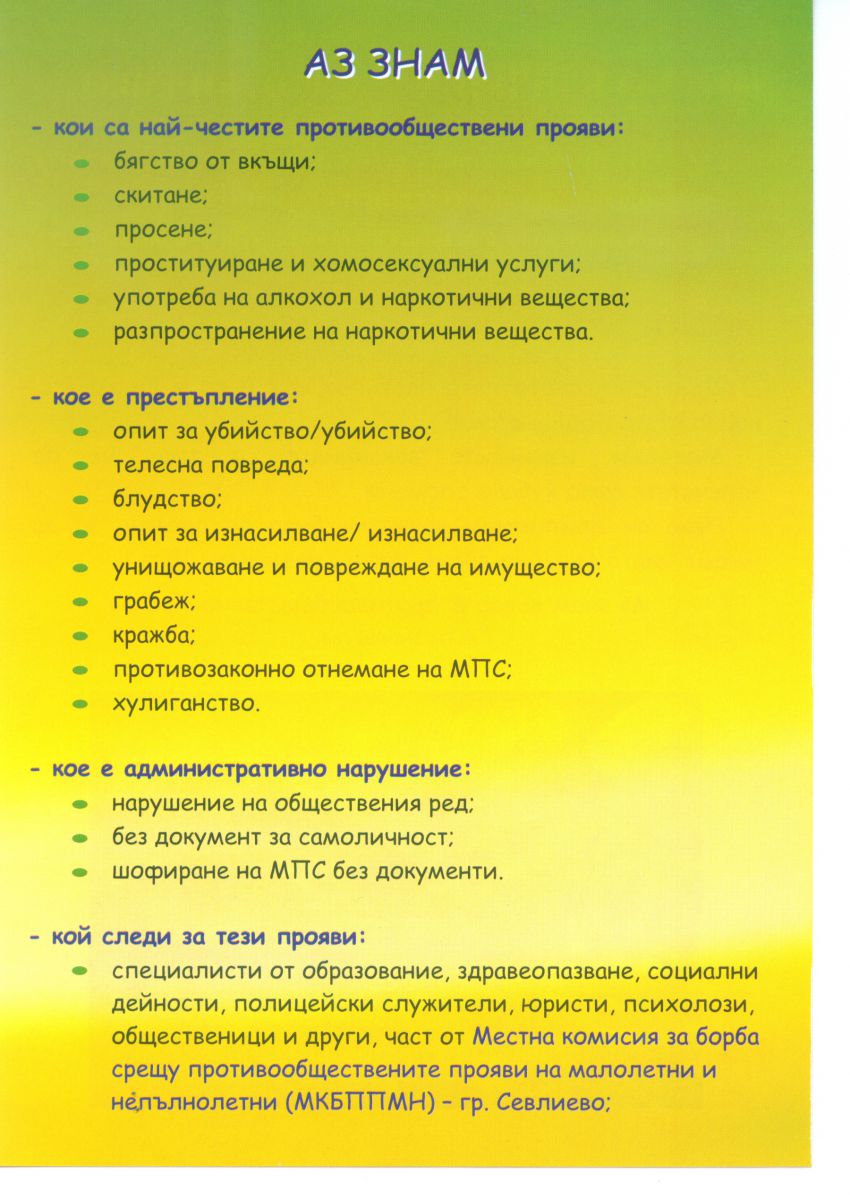 Напомняме на всички деца, младежи и родители, че специалистите, работещи към МКБППМН са готови да подадат ръка на всеки, който има нужда от нас.