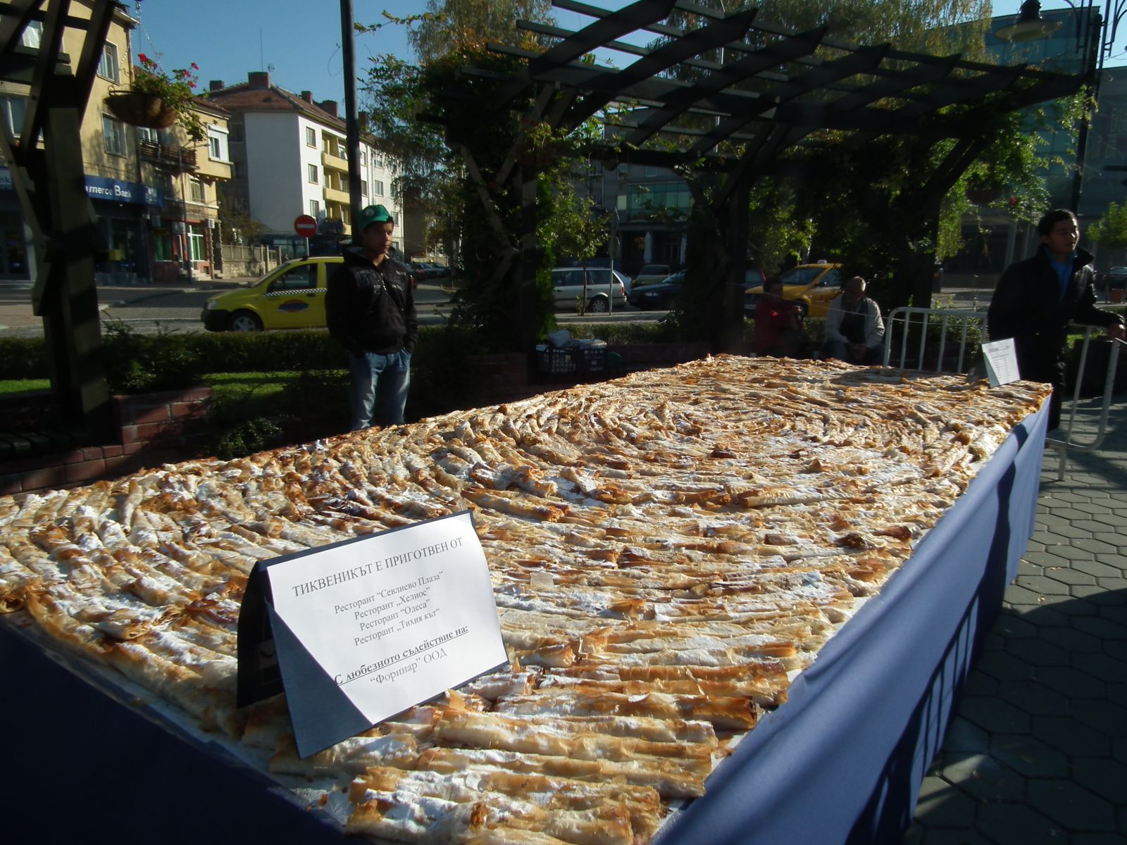 И тази година севлиевци имаха възможността да опитат от най-дългия тиквеник. Той е с 14 метра по-дълъг от миналогодишния и бе раздаден на жителите и гостите на града след откриването на кулинарната изложба – конкурс „Тиквени изкушения“ /експонирана в централното фоайе на Община Севлиево/. За рекордните 249 метра на тиквеника са използвани 110 броя кори за баница, 88 кг. тиква, 14 кг. орехи, 15 л. олио, 15 кг. захар, 0.160 кг. ванилия и 0.400 кг. канела. Вкусният сладкиш бе наръсен с 3 кг. пудра захар. Приготвянето му отне 3 дни, а в направата му се включиха ресторантите „Севлиево Плаза“, „Хелиос“, „Одеса“, „Тихия кът“, и фирма „Форинар“ ООД.